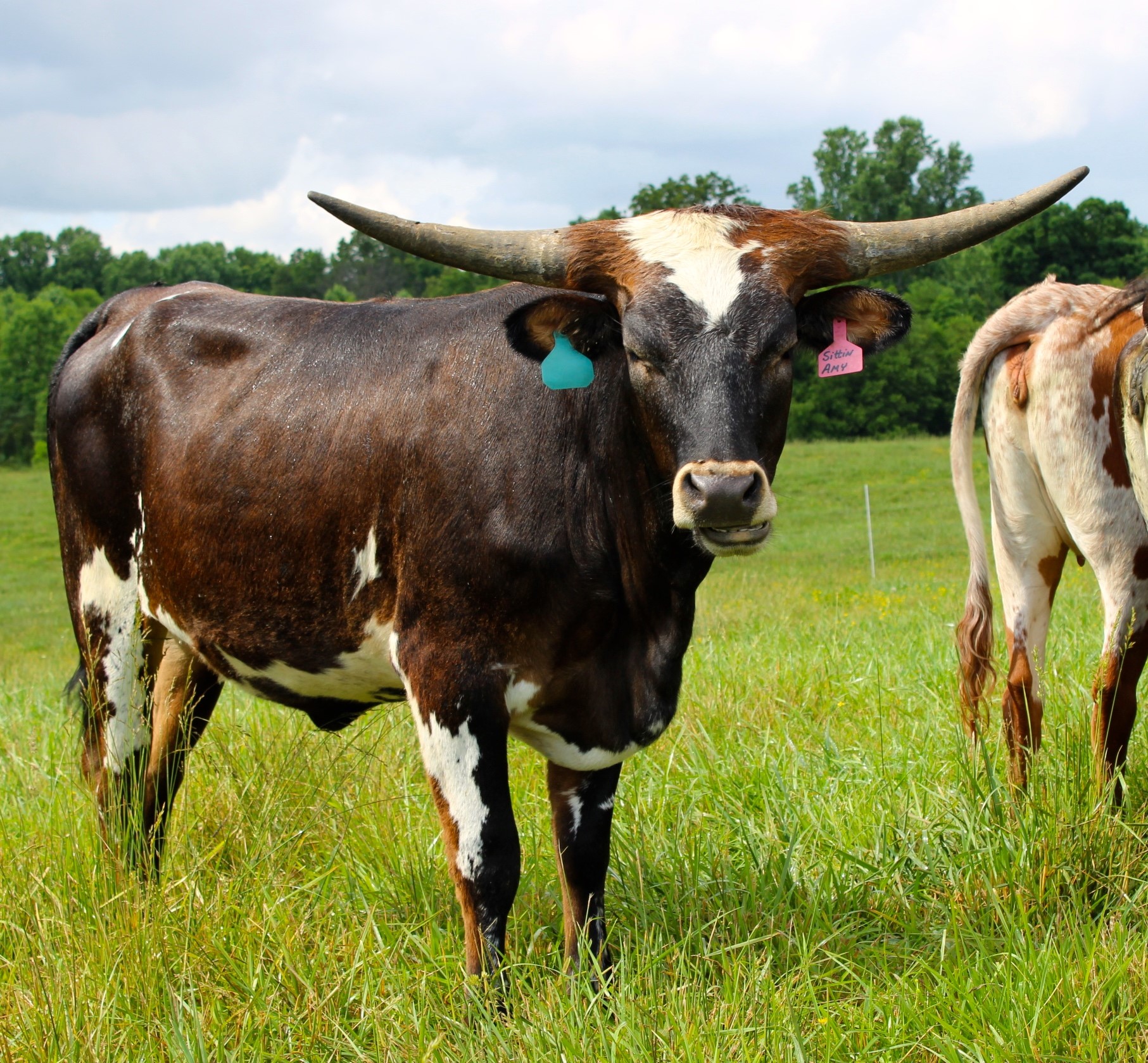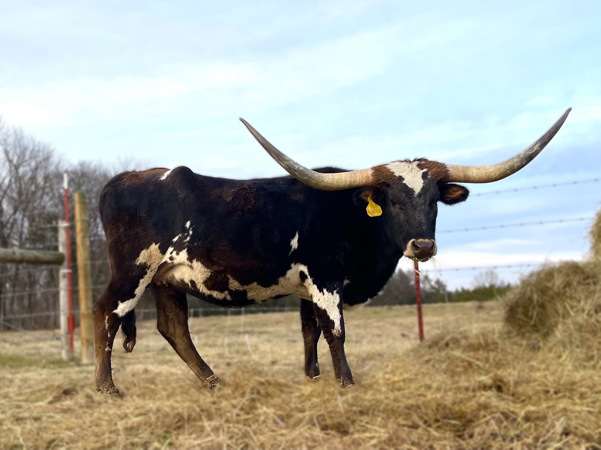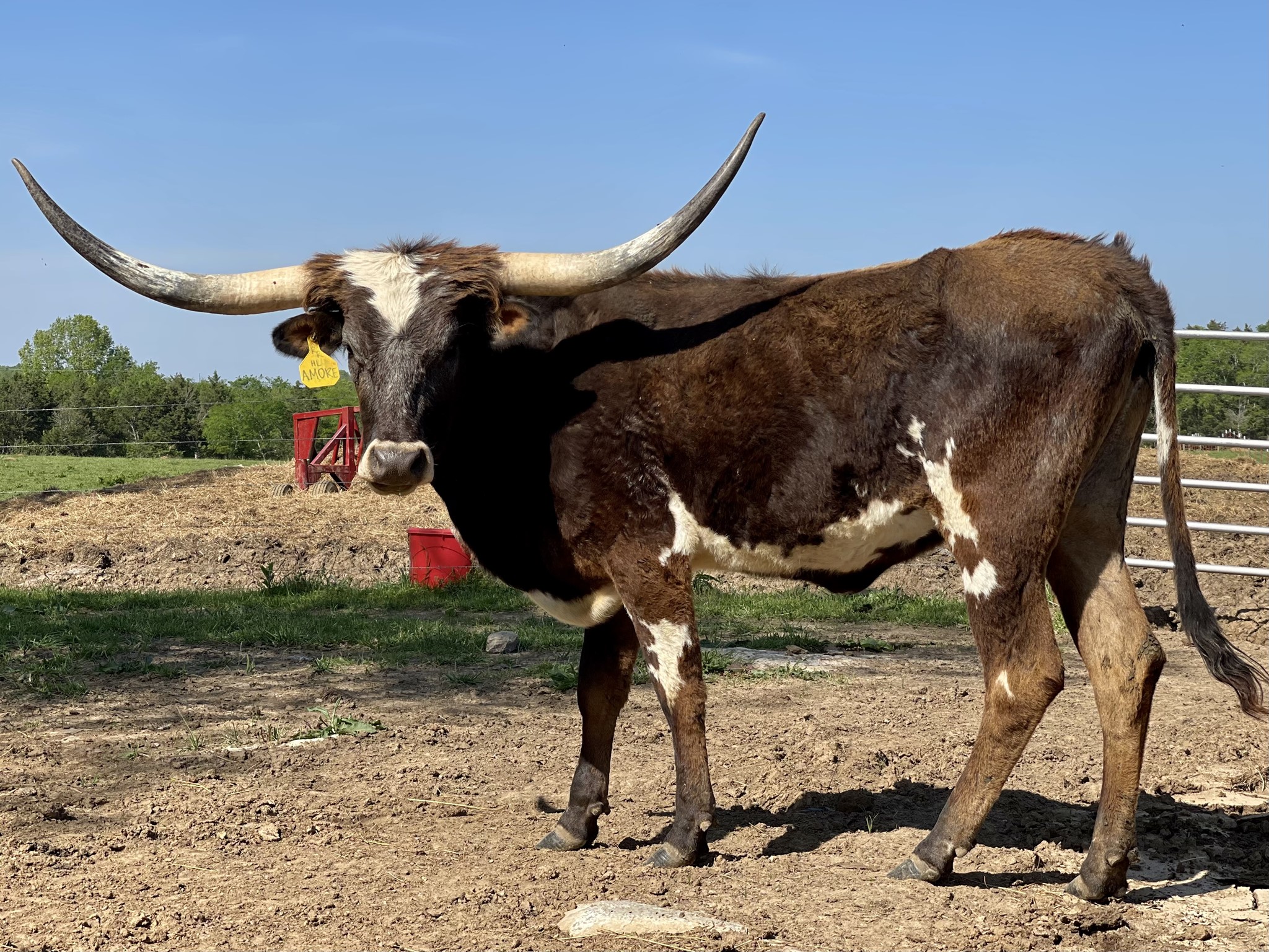 Bred by Hudson Longhorns and sired by the 85"TTT Vindicator this young lady has an extremely promising future. She is well built with great conformation, has a beautiful deep parker brown color, great set of horns, and calm disposition. Not only does she have super stacked genetics running in her veins with some massive TTT on them, such as the over 93"TTT WS Sun Star, over 90"TTT ECR Eternal Tari 206, WS Jamakizm, Tejas Star, Don Julio, Senator, and the great Tari Graves FM49 all on the paternal side, on the bottom she's out of a wonderful Sittin Bull daughter and goes to JP Rio Grande, Hunts Command Respect and Watson 83. Giving us 2 out of 2 well-built heifers as well as being the "babysitter" cow, her mothering skills, pedigree, disposition and conformation is bound to make her one of your favorites as well! Sells with bull calf at side born 4/9/2025 and sired by CHEROKEE HR.