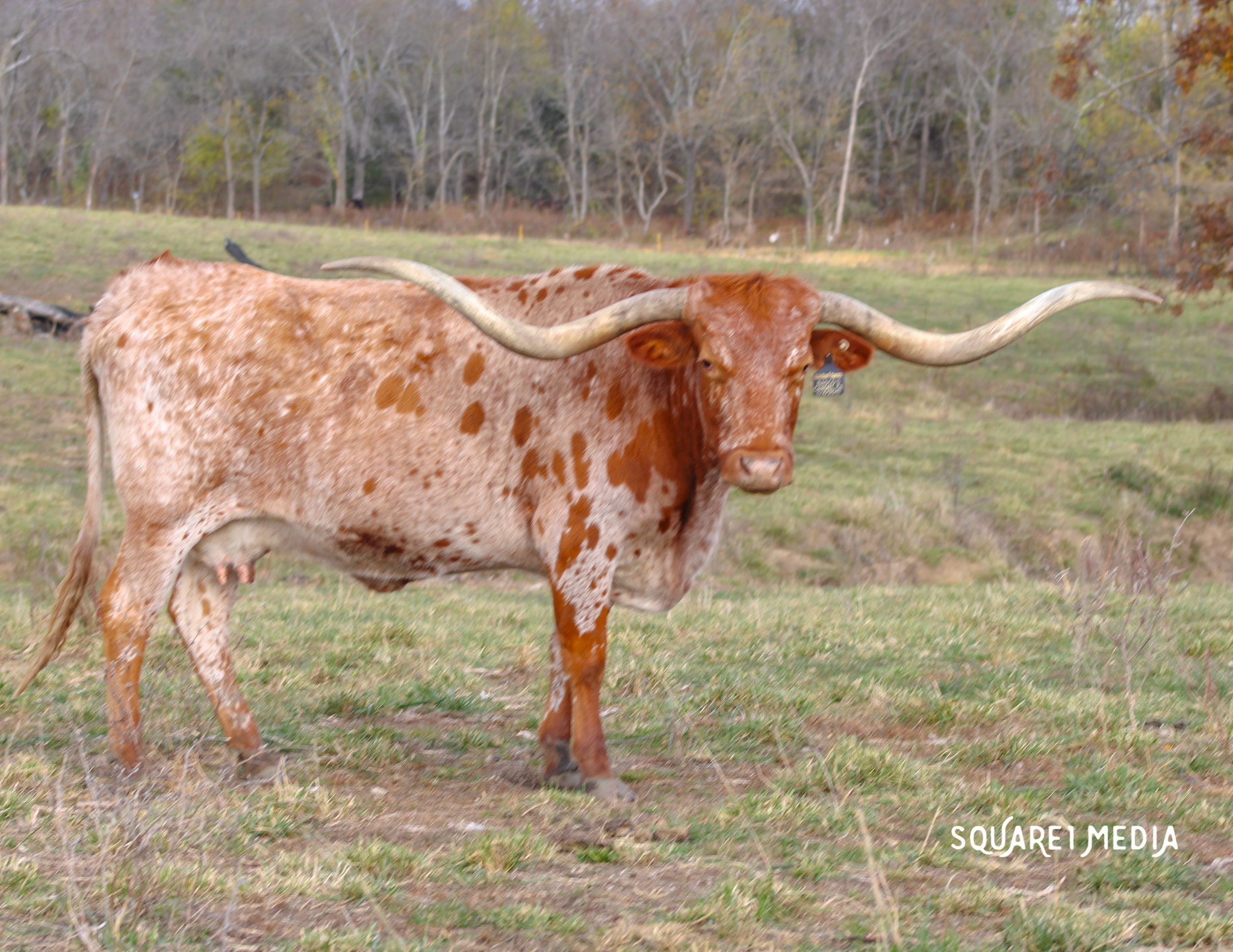 Beautiful roan twisty horned cow! She is a half sister to our Carmen 123 CB cow. We love this maternal line. Looking forward to her 2025 calf by Ironman HR