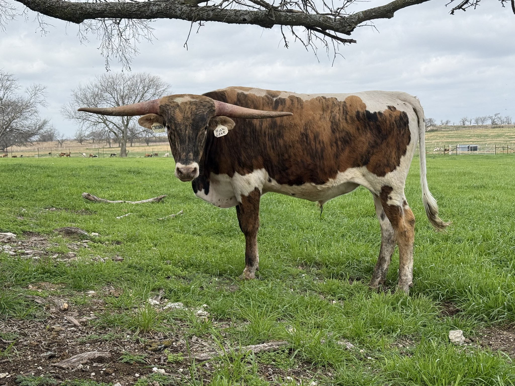 This young up and comer is sure to be a herd sire. Breaking the 40” mark before his first birthday. Hopefully he follows in his daddy’s footsteps and brings home some HSC bronzes. He has perfect horn direction with lateral horn set.