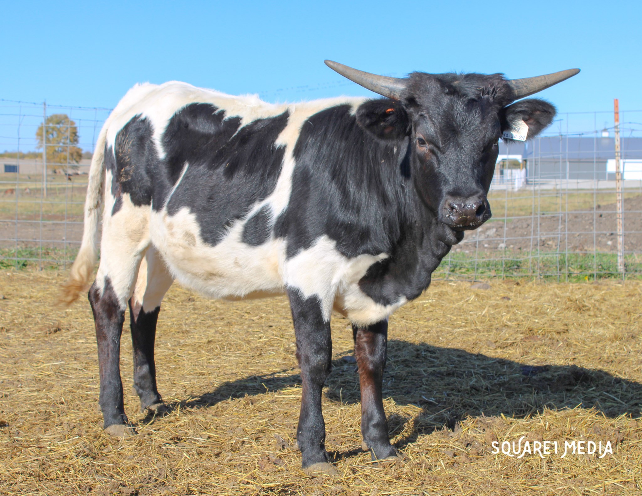 One of the first Ironman HR heifers on the ground. Gorgeous black & white heifer with a stacked pedigree!!! Baby Foxy has been genetic tested, and she is an EDE+ Dominant Black with Wild Type (Neutral allele). She will not produce a red calf.