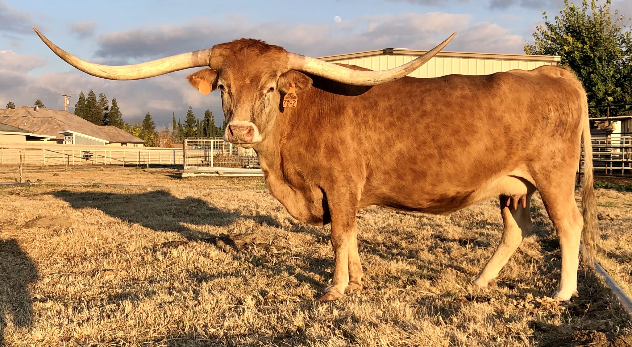 Over 90" of total horn, great conformation, and built like a cow should be. Queen also enjoys eating hay cubes out of your hand. She has a pedigree with 5 animals over 80” ttt. We are retaining her 2022 heifer by California Chrome LR.