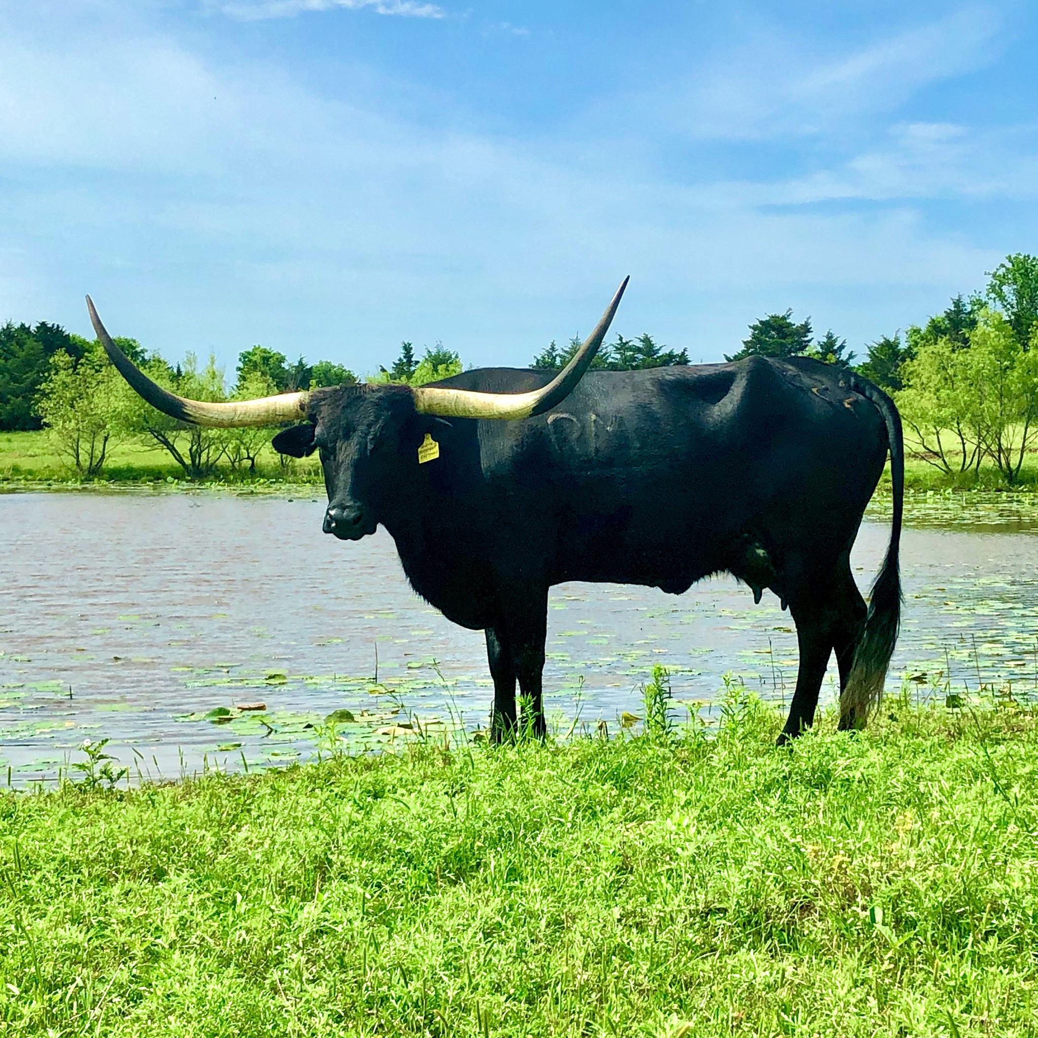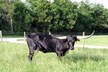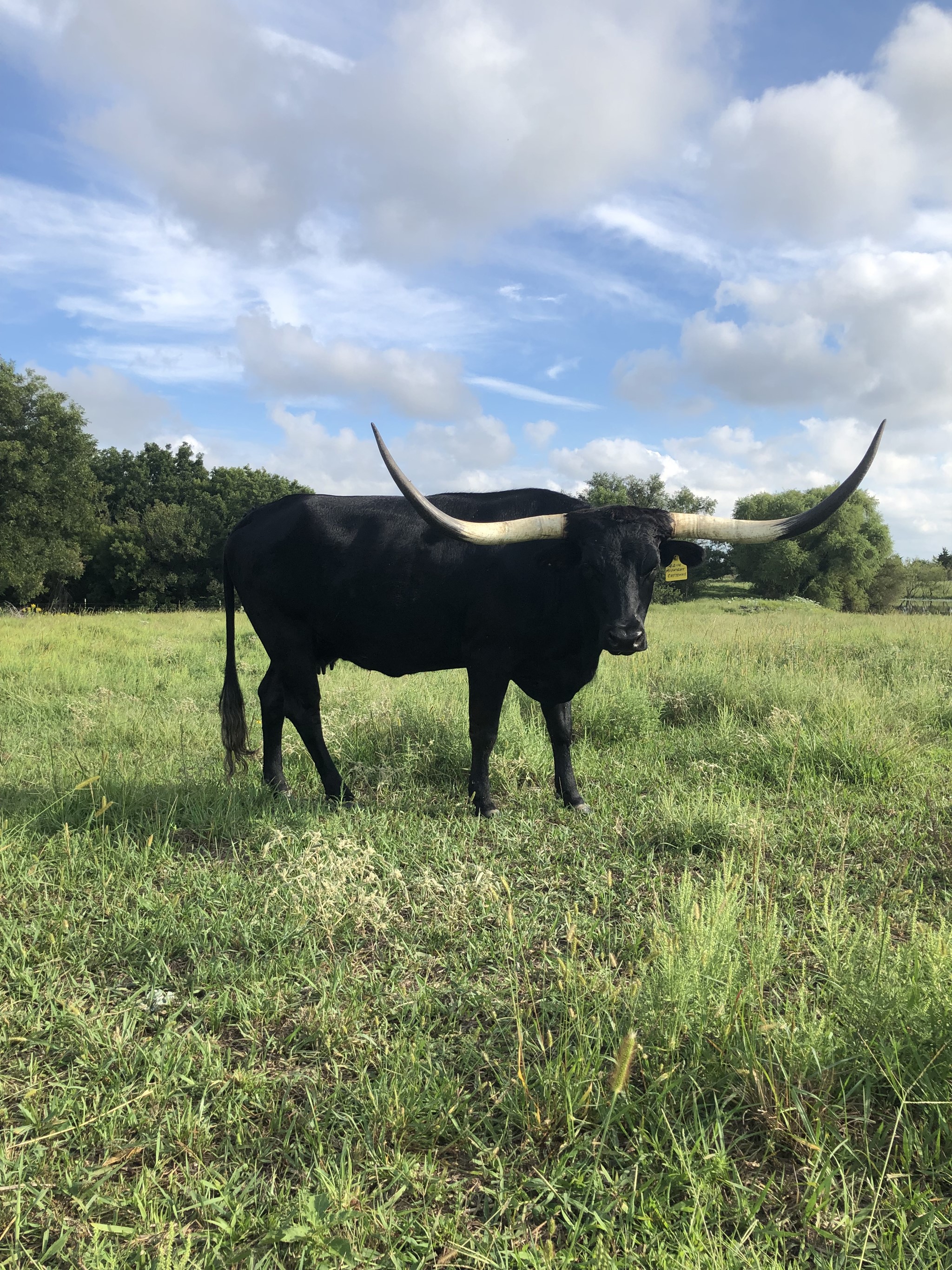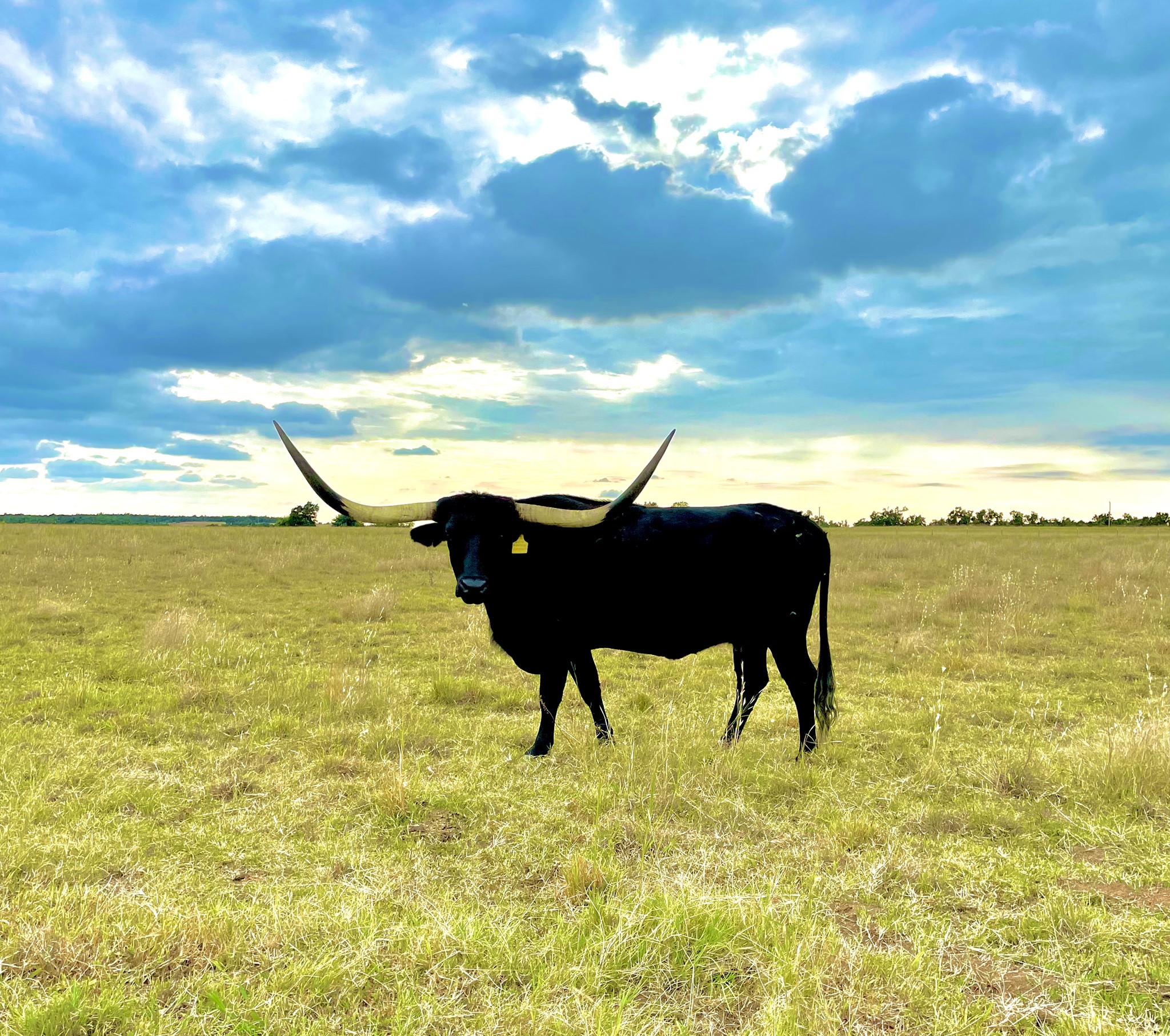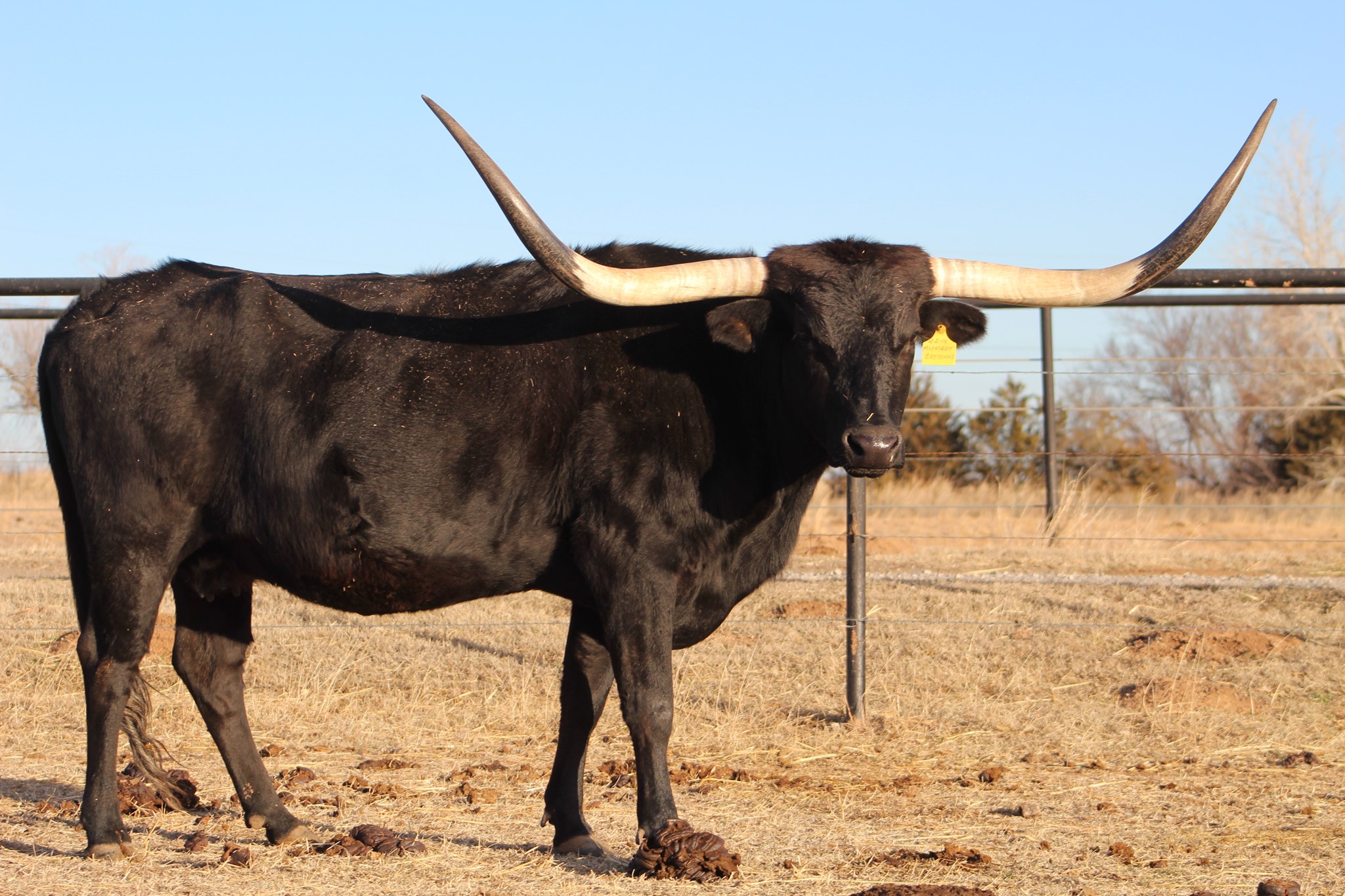 Midnight Cheyenne is a huge bodied cow sired by none other than the legend himself, Drag Iron. She is out of a gorgeous black and white cow, Awesome Cheyenne. Laid back and easy going, she rules the roost simply due to her size. Tons of total horn on this girl. Each of her calves will be one of the largest calves born each year.