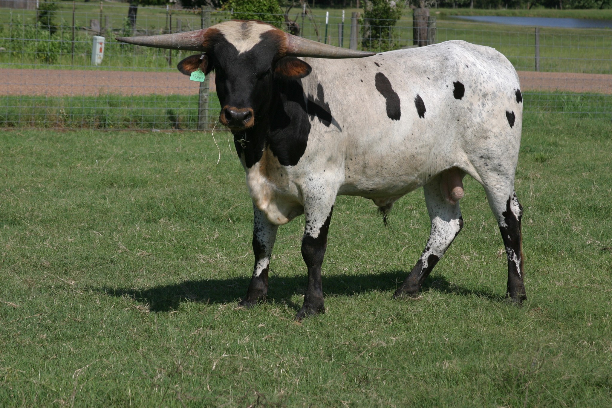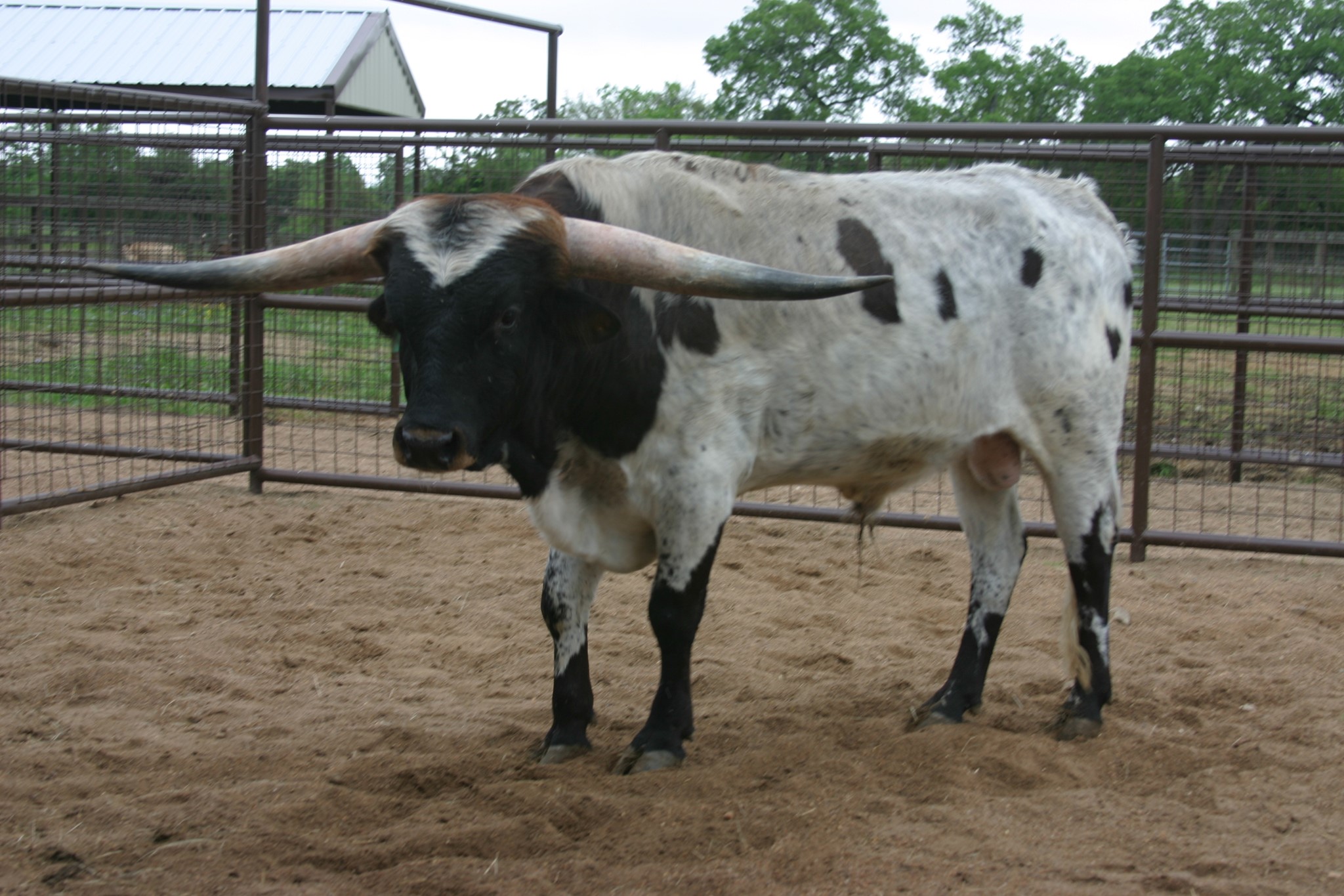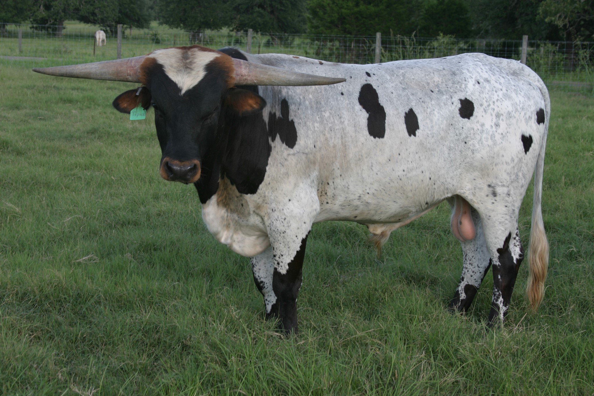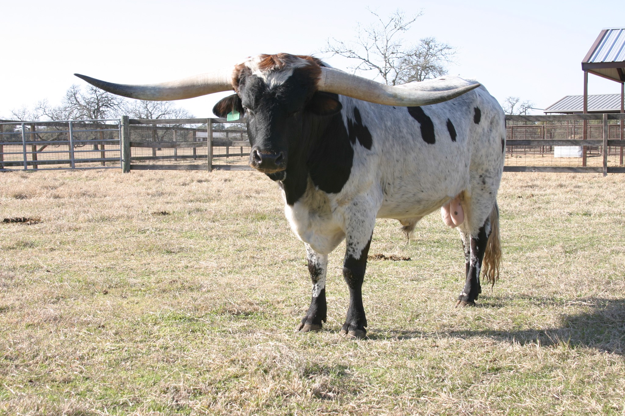 This bull has been in hiding but 2023 is a big year for him. He will be bred to some of the biggest horn young females in the breed. RJF Lock & Load is sired by the World Record holding longest horn bull Cowboy Tuff Chex 105.625" T2T and out of the World Record holding cow for total horn M Arrow Cha-Ching 103.75" T2T. Unmatched genetics that will take your program to the next level.