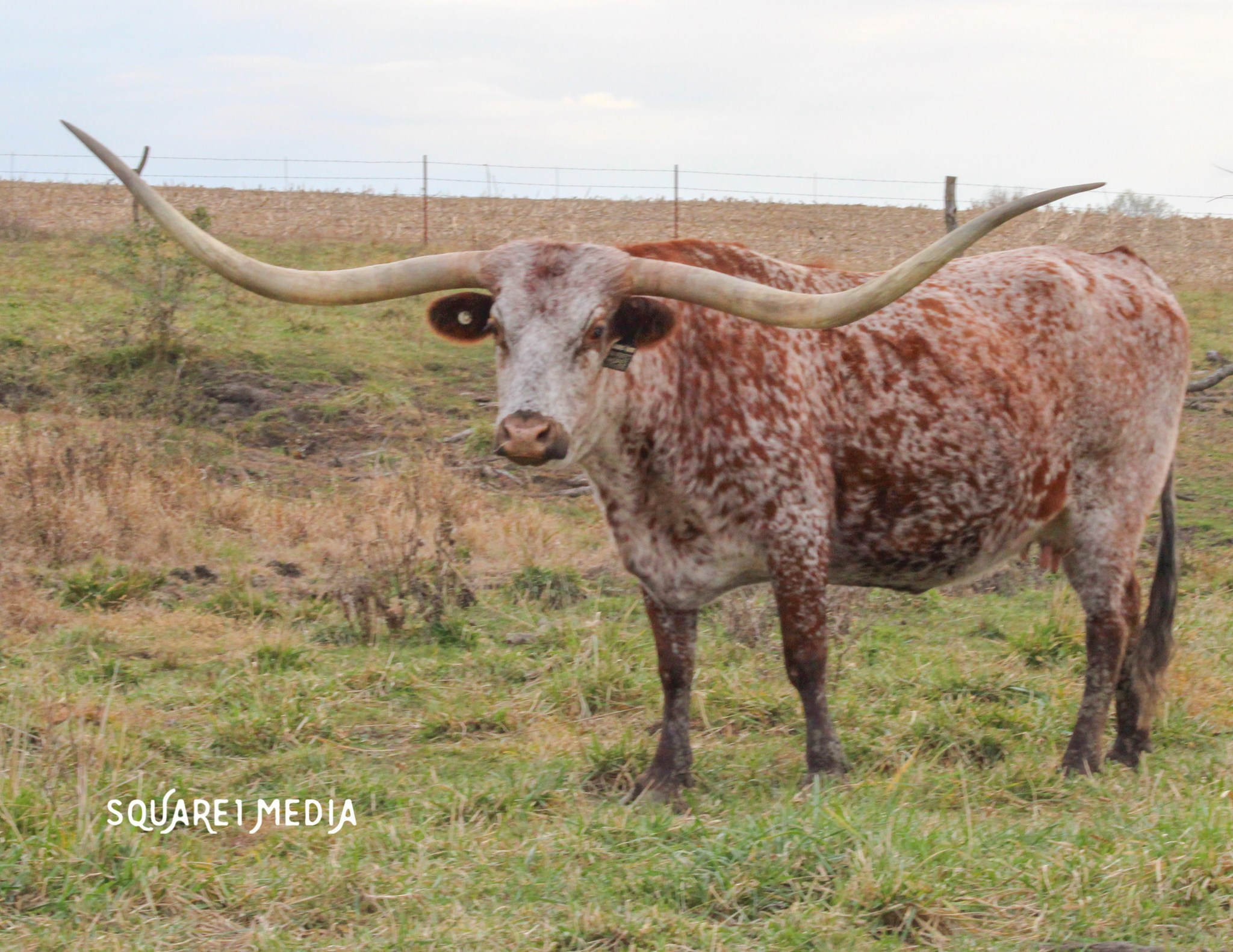 This is one of our favorites. She has a sweet personality, lots of flash, lateral horns and a pedigree that can't be faulted. Her sire is RM High Hopes, a many times proven sire of exceptional offspring. He combines breed greats JP Rio Grande and Shadow Jubilee. In most animals this alone in the pedigree would catch your attention. Then you add a strong bottom side with Top Caliber crossed on a cow that is a Plum Perfect daughter that was loaded with twist that was Emperor crossed on the best of Butler. Oh my what a package!